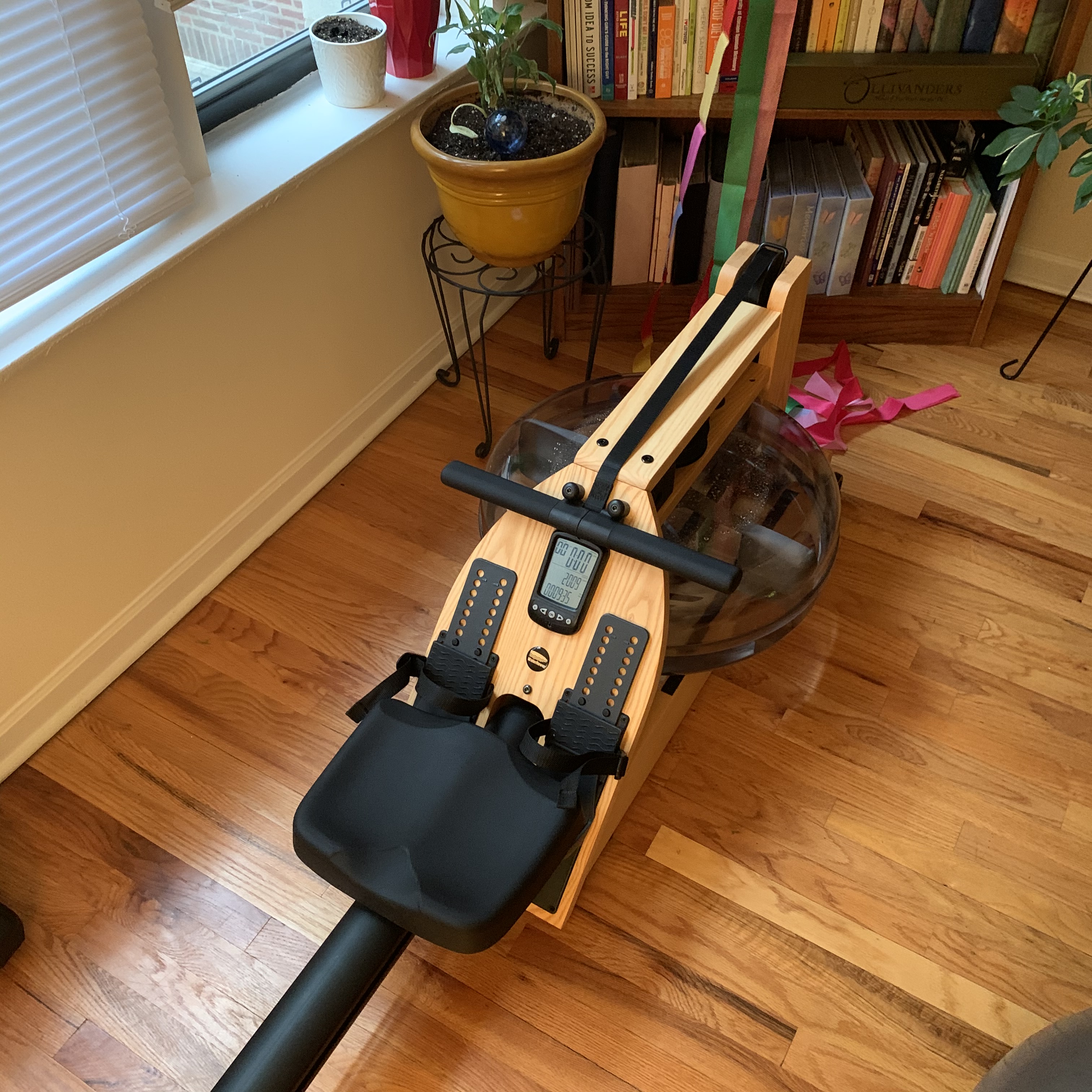 Early in 2020 I was going strong with OTF and my weight loss goals, and I felt like things were really looking up in general. But then, of course, the pandemic hit. My studio shut down. I did the OTF home workouts and I ran my way through April until I had a little breakdown the end of the month and burned myself out. I desperately missed the rower. A past stint with a treadmill made me little gun shy of dropping thousands on a rower, but I couldn’t completely resist the call. As a compromise, I put in an order to rent the least expensive model WaterRower offers.