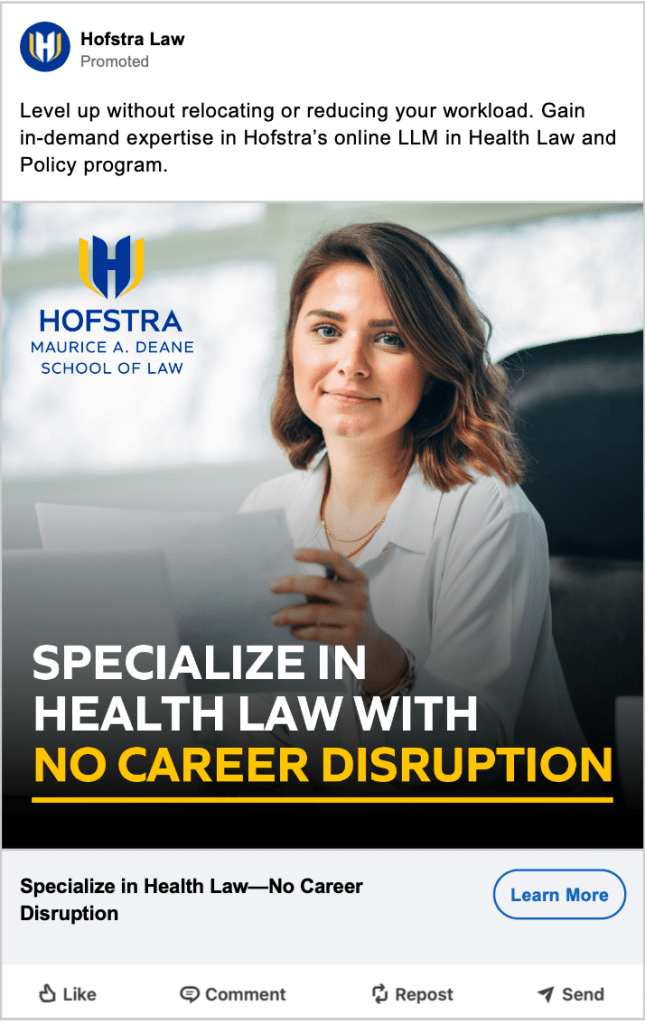Paid Social Assets for Hofstra University’s Health Law and Policy Programs